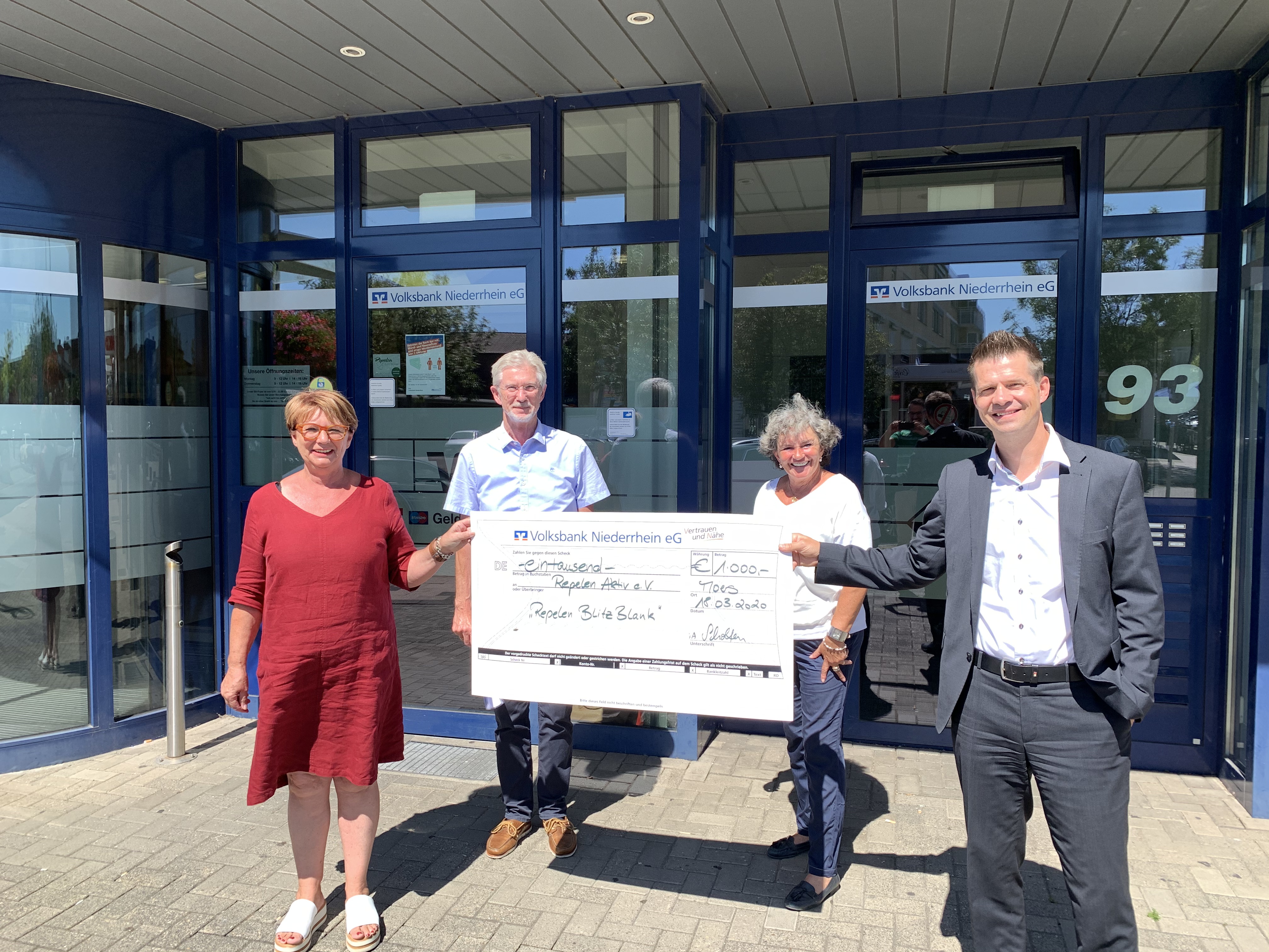 Eine besondere, sehr erfreuliche und hilfreiche Unterstützung hat „Repelen aktiv“ vor einigen Tagen durch die Volksbank Niederrhein eG in Repelen erhalten. Durch den Geschäftsstellenleiter Herrn Christian Scholten wurde dem Verein eine Spende und somit ein „Startgeld“ in Höhe von 1000 EUR zur Verwendung in dem Projekt „Repelen Blitz-Blank“ überreicht.