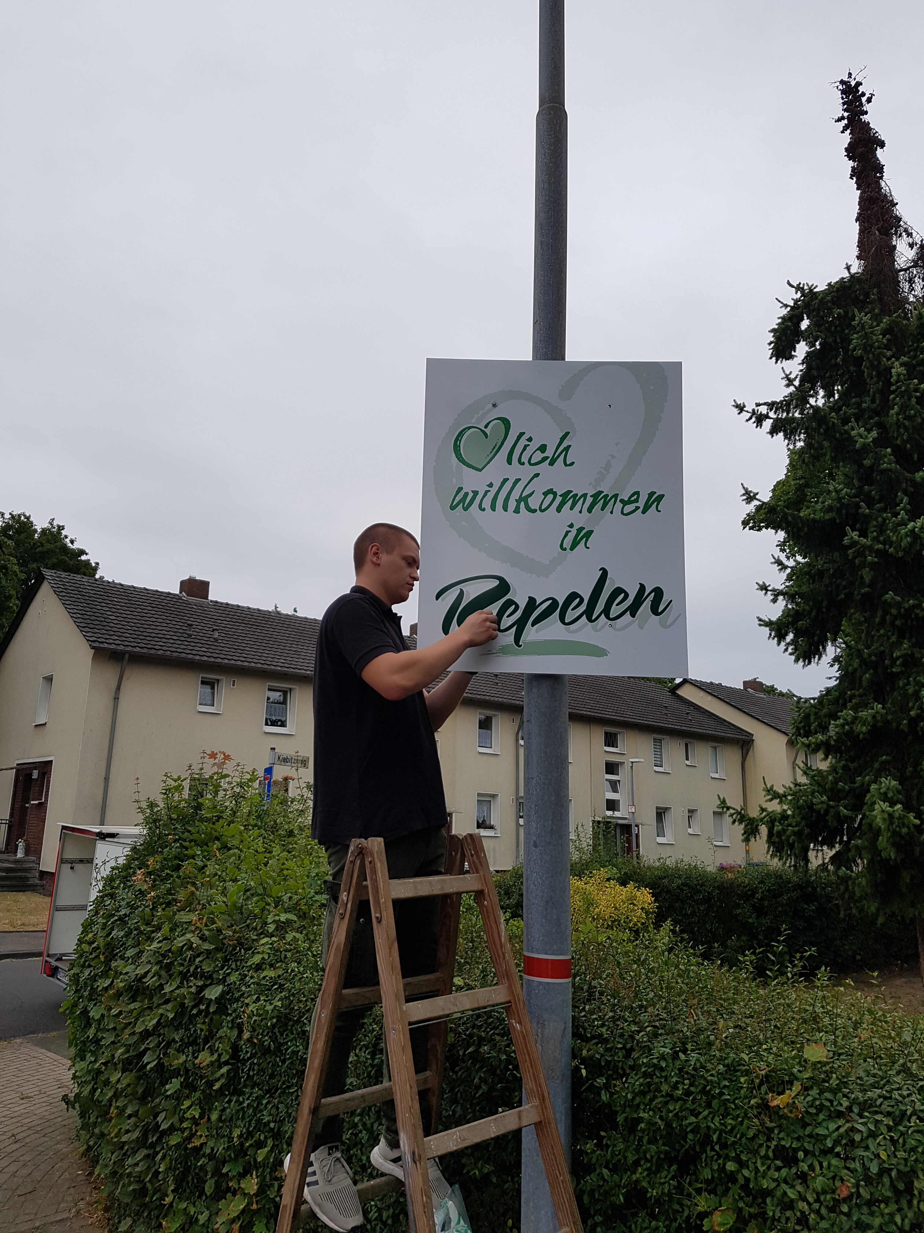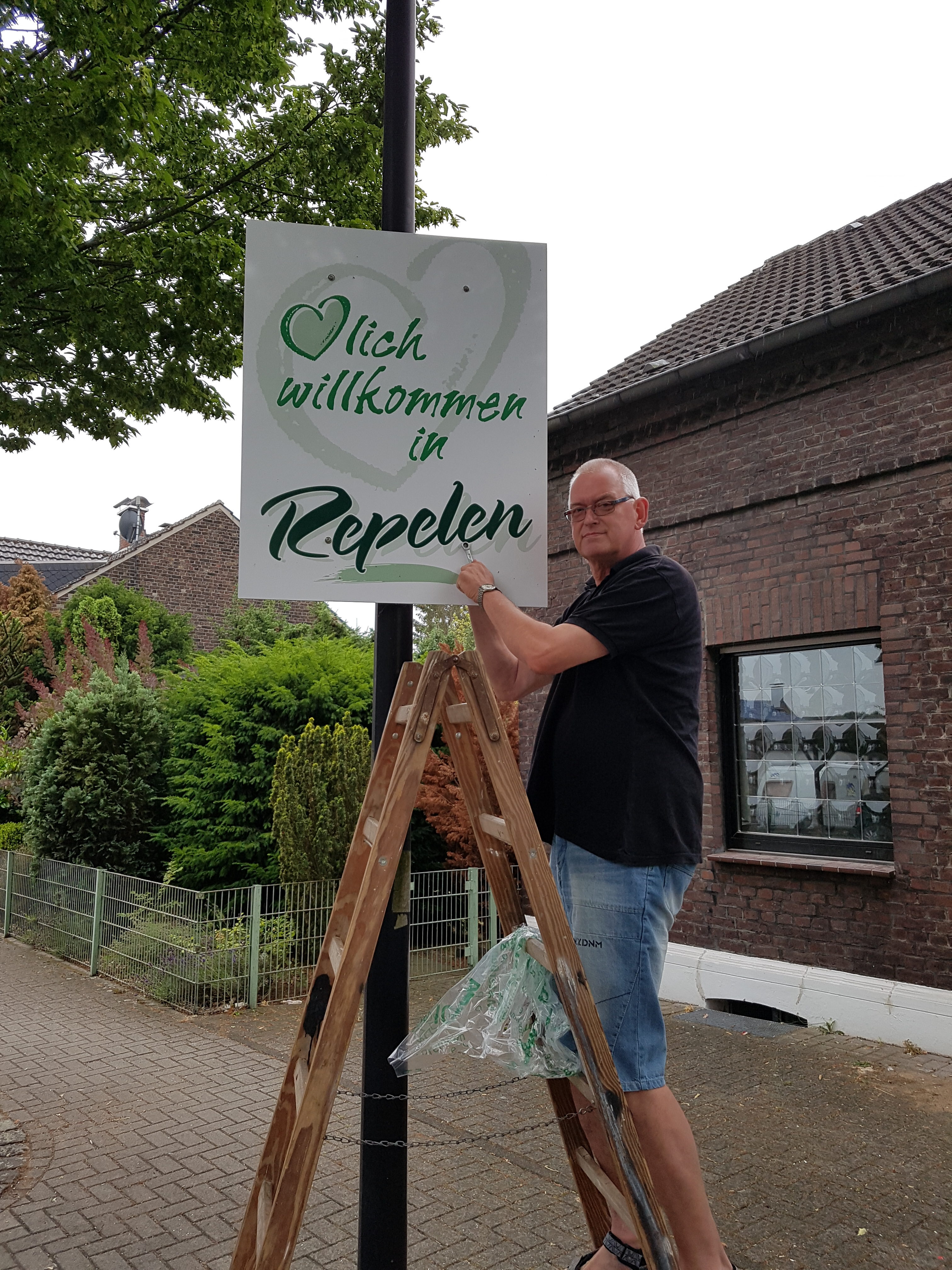 Wer nach Repelen einfährt, sieht an einigen Laternen am Ortseingang große „Herzlich Willkommen in Repelen“ Schilder. Diese hängen seit Jahren an unseren Ortseingängen und begrüßen jeden, der in unseren schönen Stadtteil einfährt.Seit Jahren sind sie Sonne, Regen, Wind und Eis ausgesetzt und mussten daher erneuert werden.