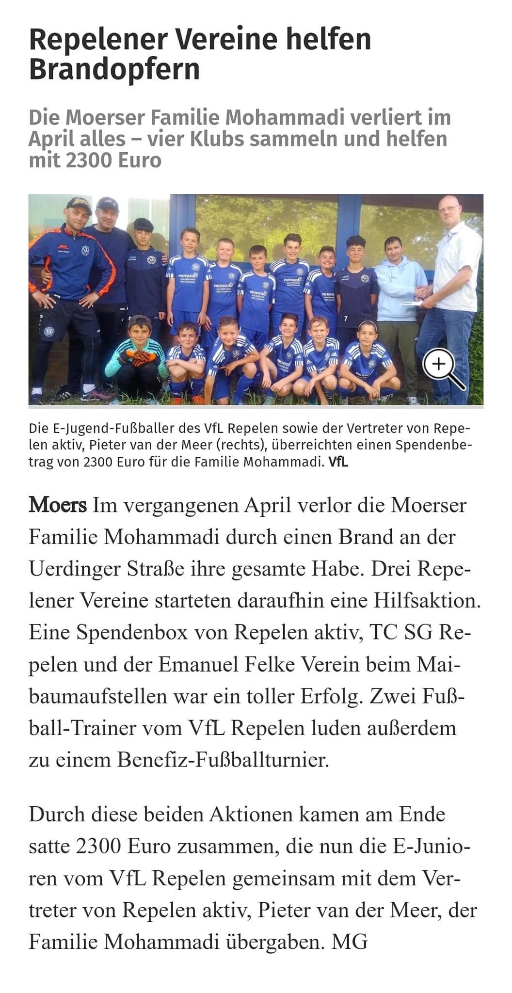Am 30.04 haben wir bei der Saisoneröffnung mit dem VfL 08 Repelen zusammen eine Spendenaktion begleitet. Diese ist sehr erfolgreich verlaufen durch die tolle Mithilfe aller Anwesenden und Mitglieder. Wir freuen uns sehr hier helfen zu können.